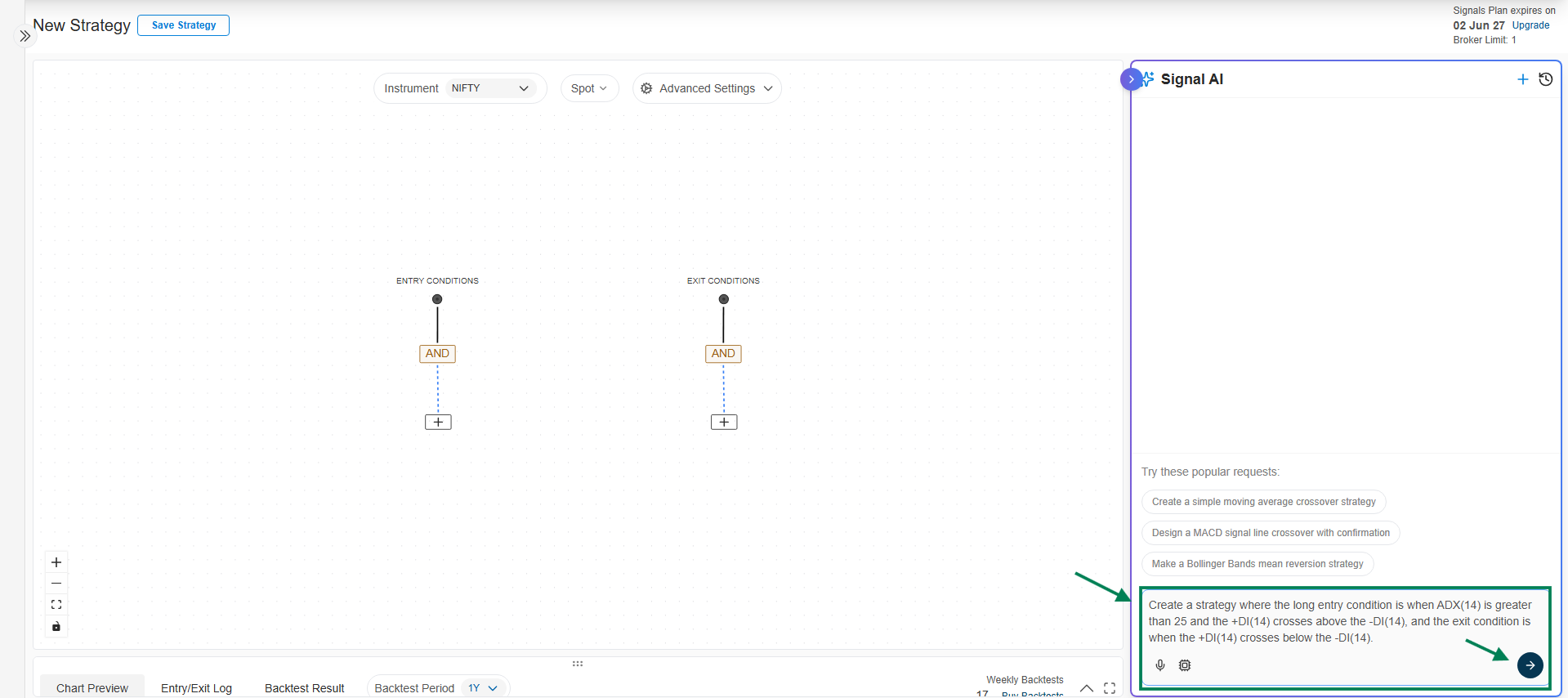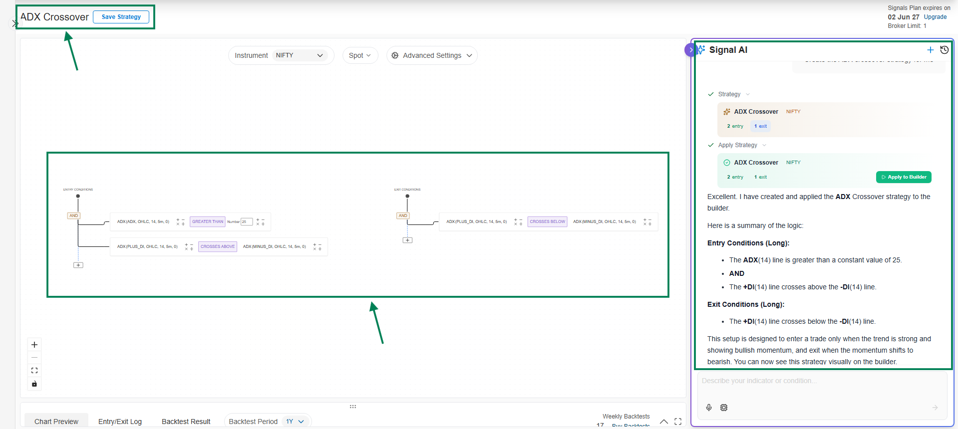 β Lets Build ADX Crossover Strategy using Signal AI:Β