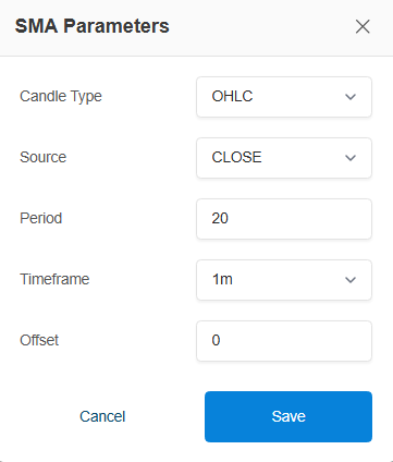 Use these settings to configure SMA before applying it to your strategy conditions.