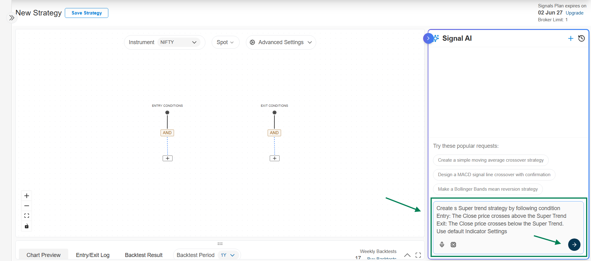 β Letβs Build SuperTrend Strategy using Signal AI Agent Chat Bot
