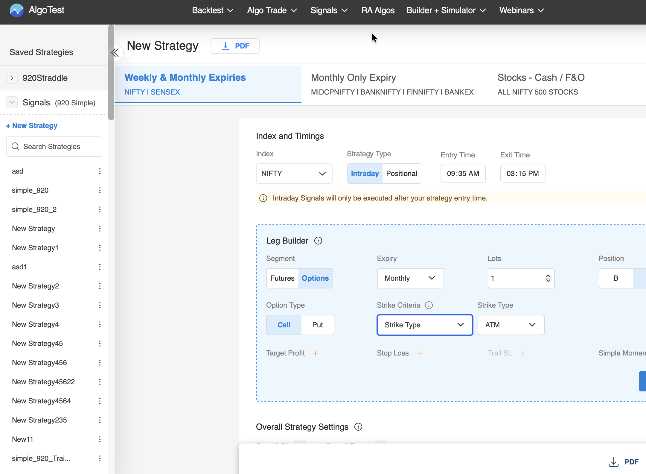 Let's say you want your system to automatically execute the Nifty 23450 PE for the current week's expiry -- you can simply input this into the system. Then, once your entry conditions align with your strategy, it will smoothly execute the Nifty 23450 PE trade.