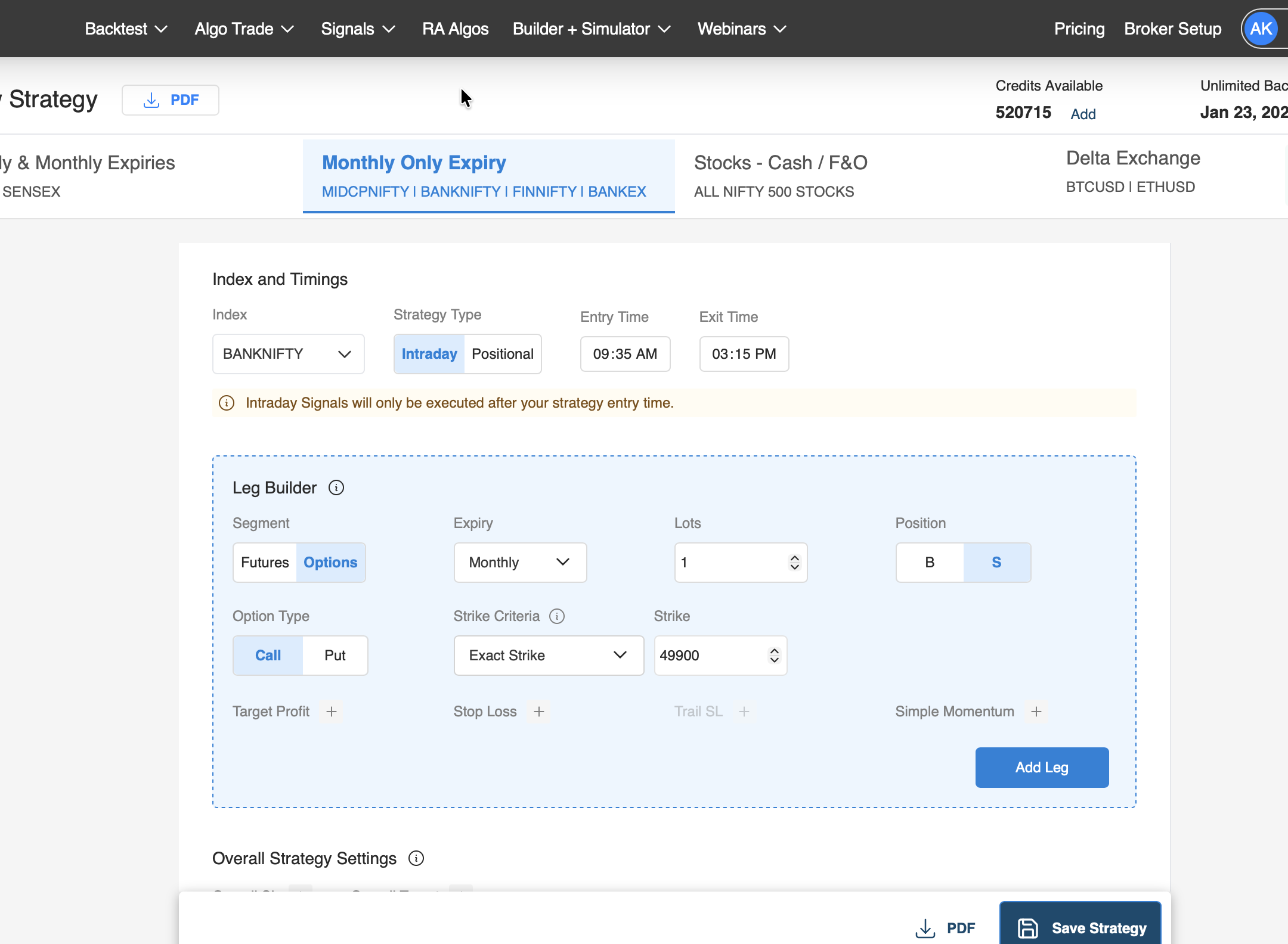 You're all set to add this leg by simply clicking on the Add Leg button. After that, you can save the strategy and begin trading!