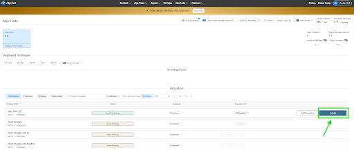 Now, click on the “Activate” button on the right side of the strategy name to activate the strategy as shown in the image below. It is important to note that you have to activate your strategy daily and you can activate your strategy between time 08:00 AM to 03:28 PM. You have to activate your strategy at least 2 minutes before your entry time.