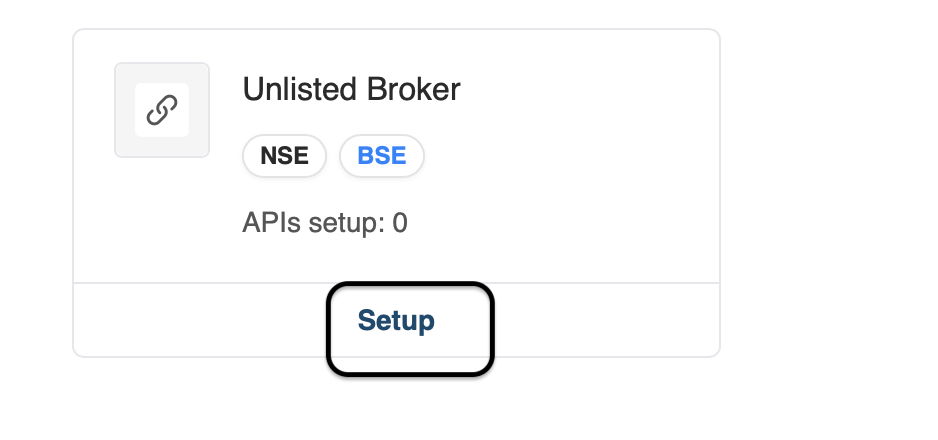 - Now click on the setup after finding Unlisted Broker (search Kite to set it up).
