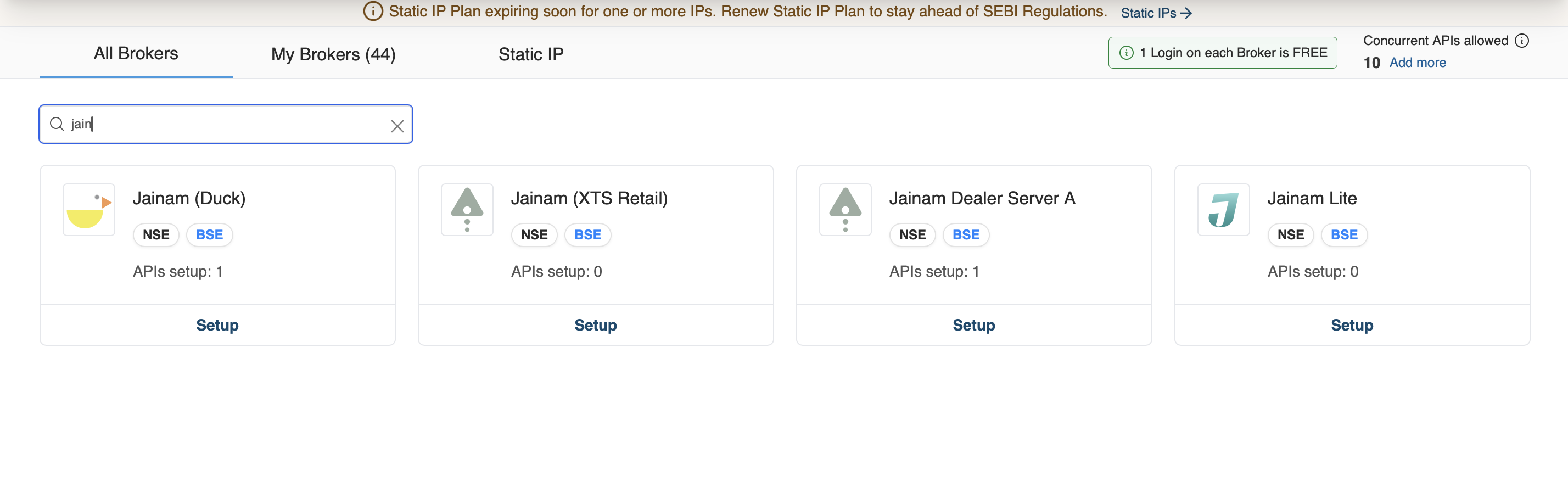 - Click on the setup icon located on the right side of the Jainam (XTS Retail)