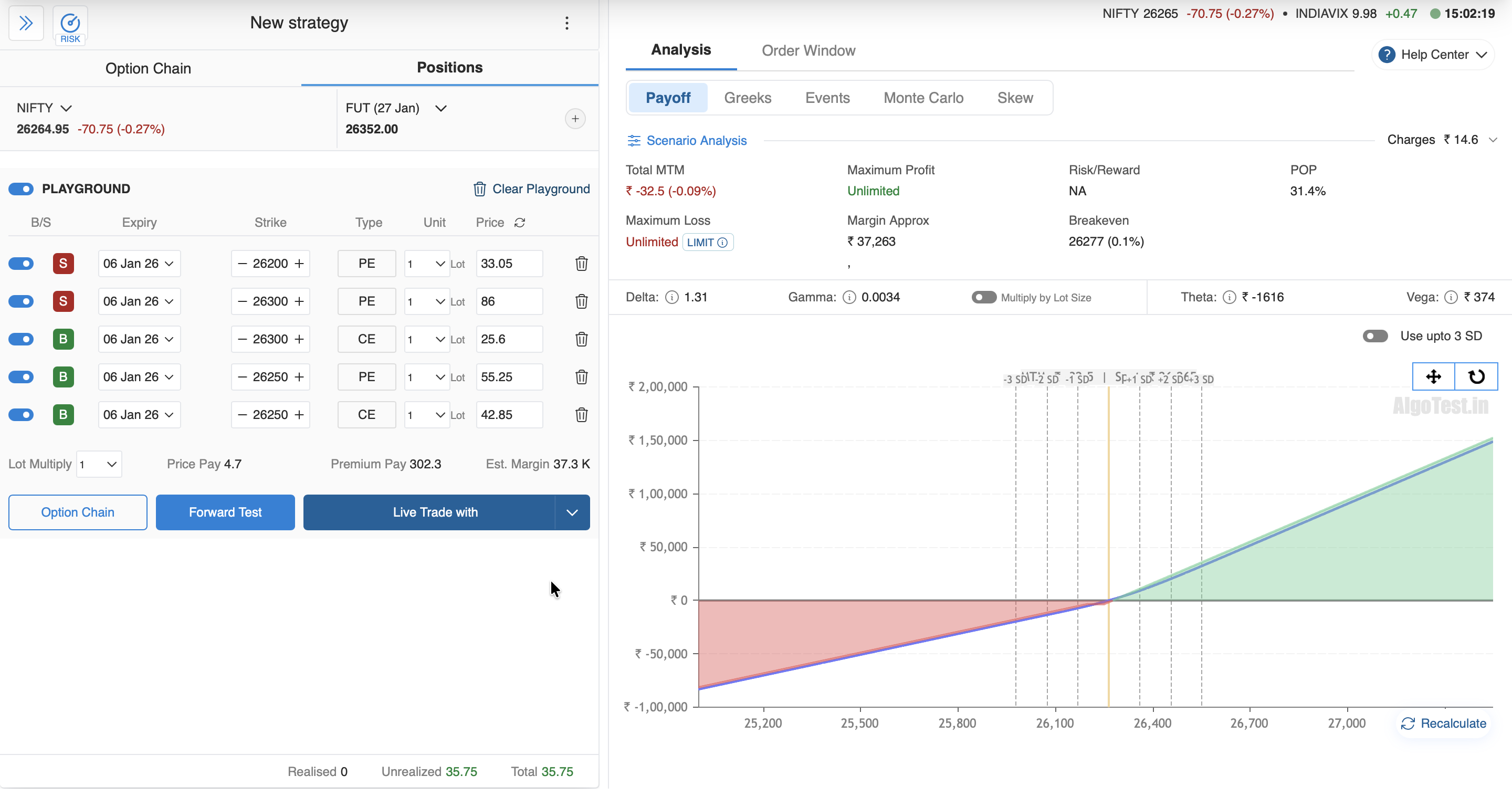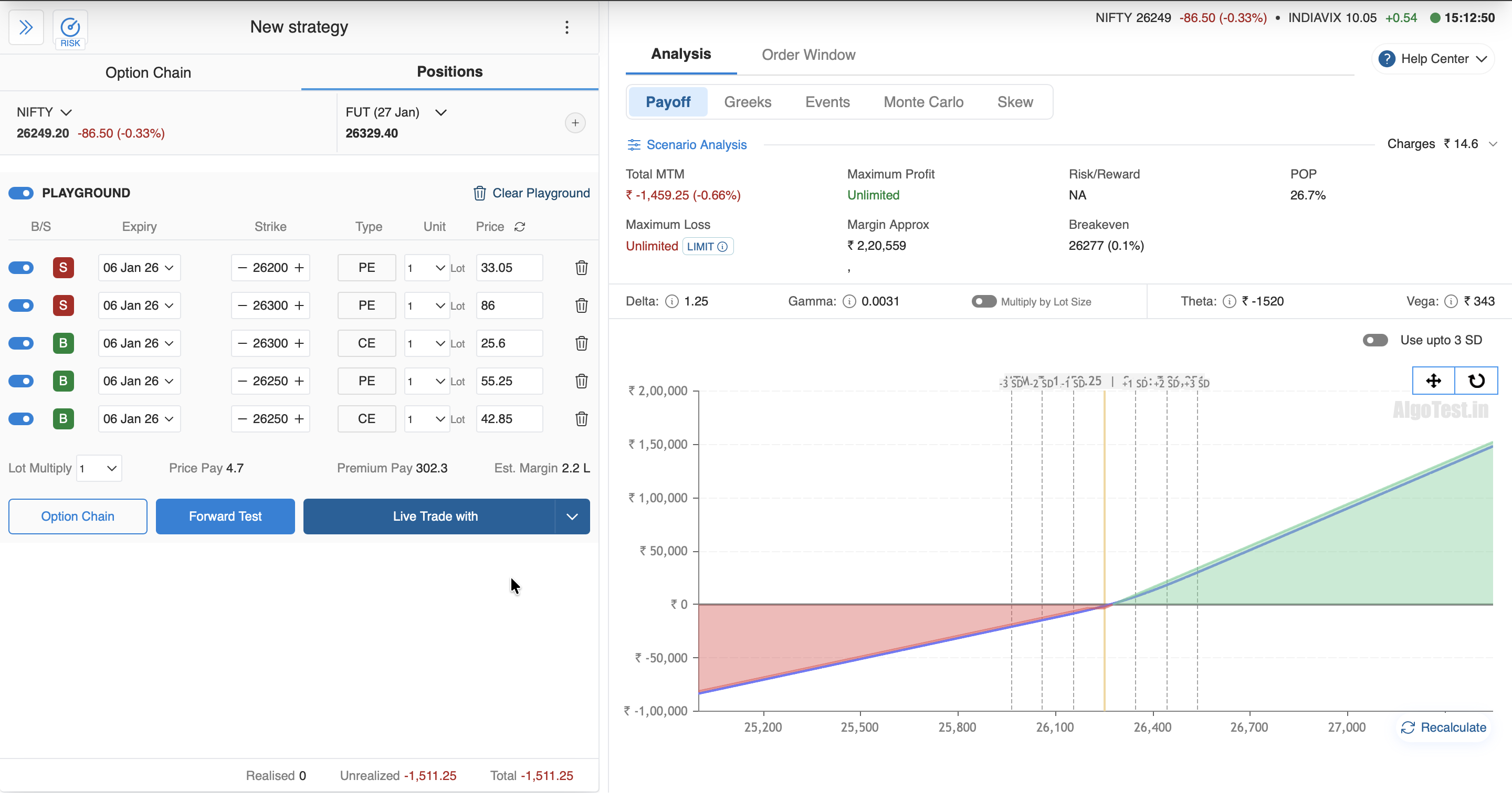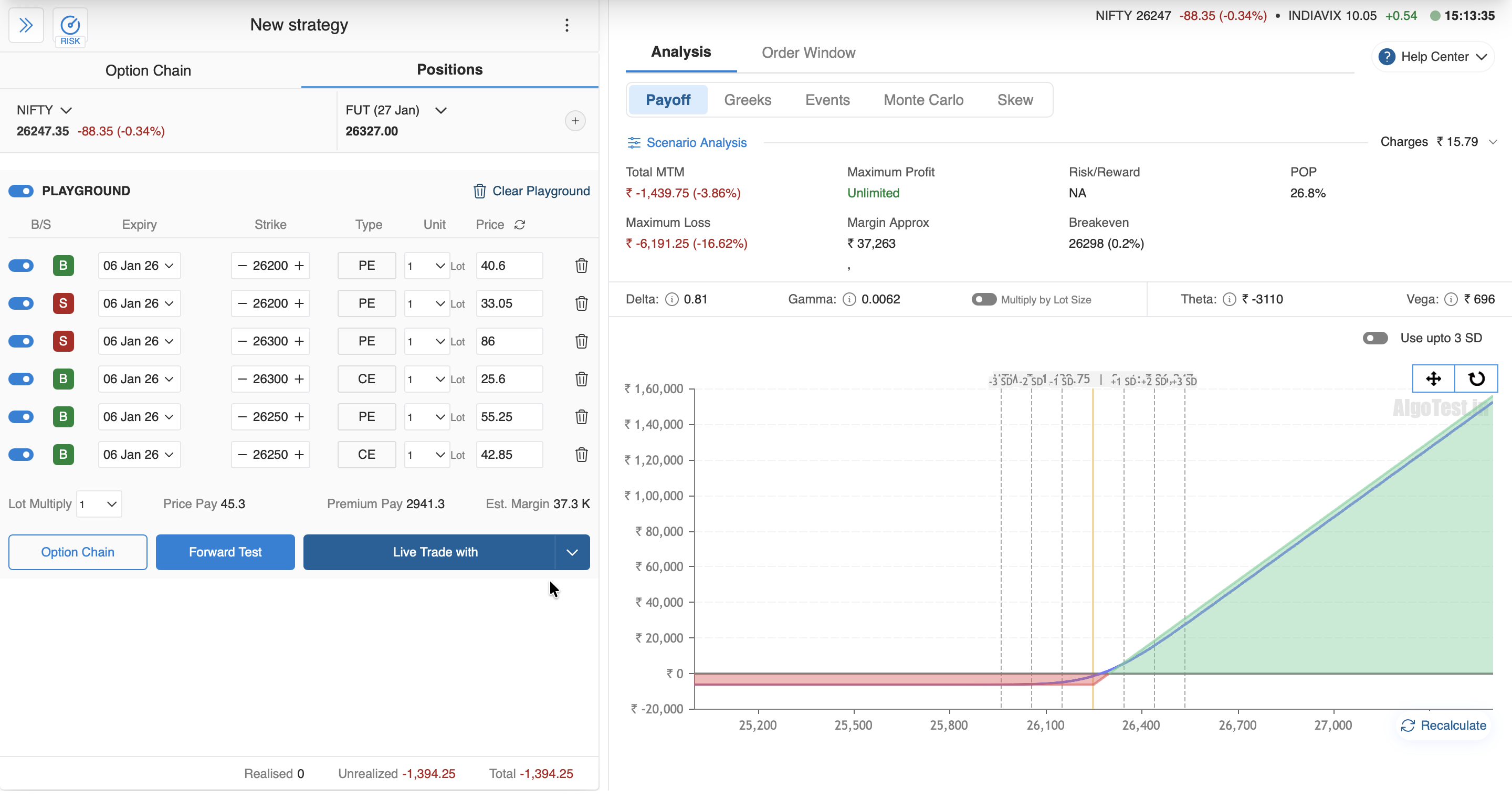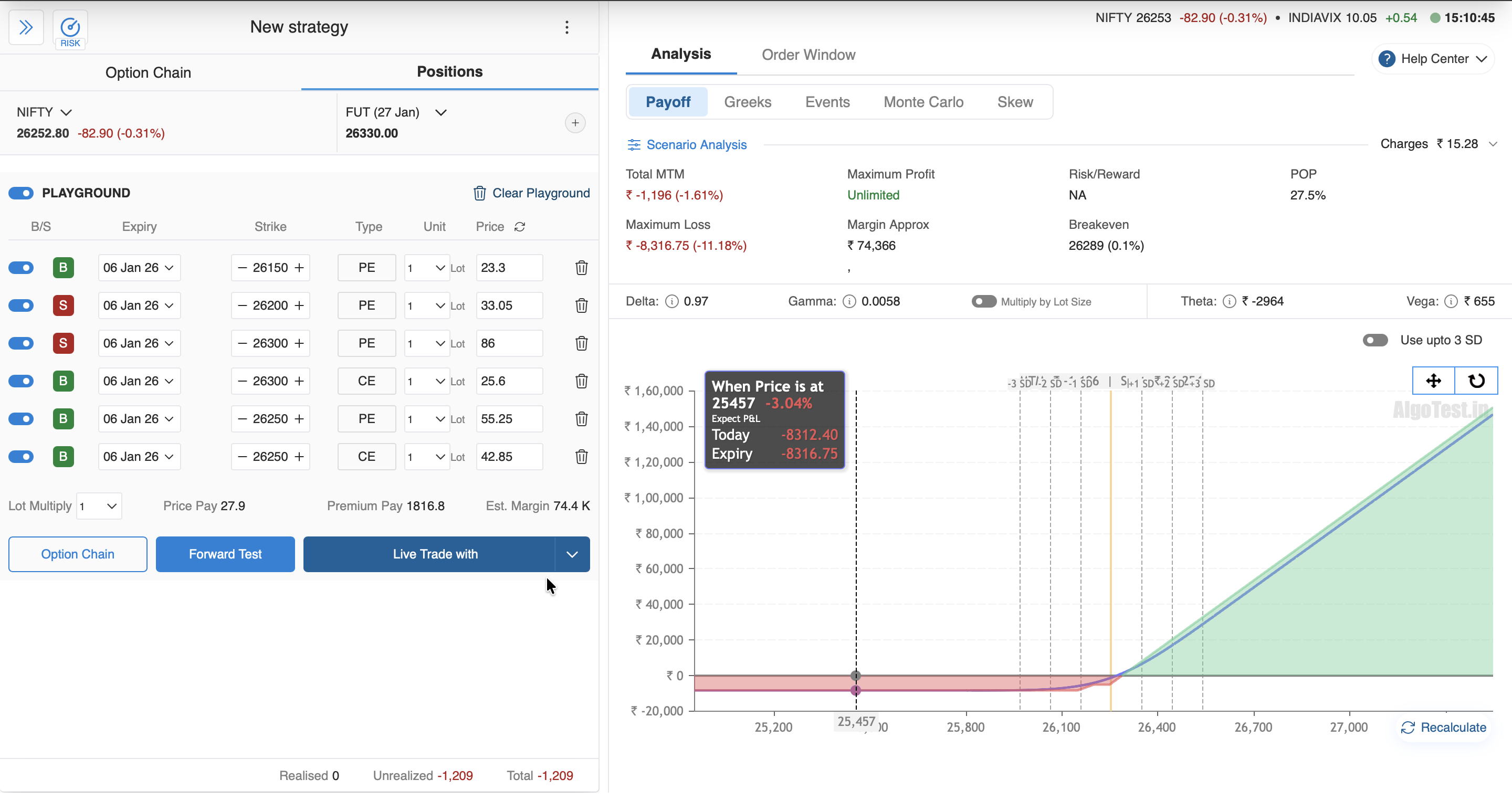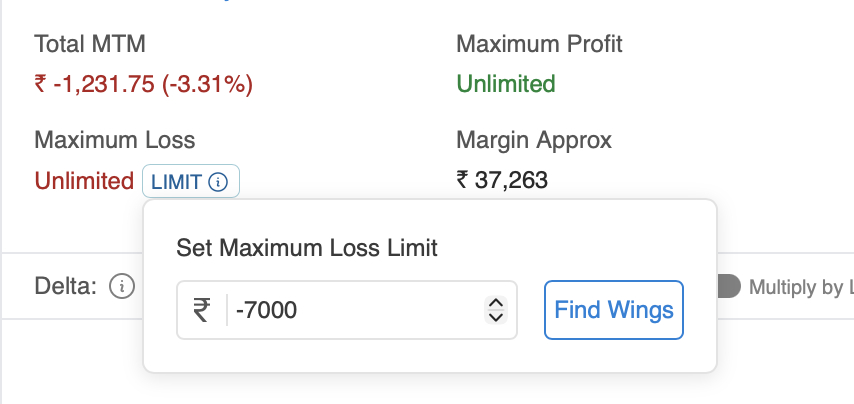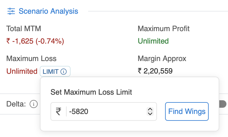 - The Loss Limiter will find the wings for your position in a way that makes your position's Max Loss close to Rs. 5800.