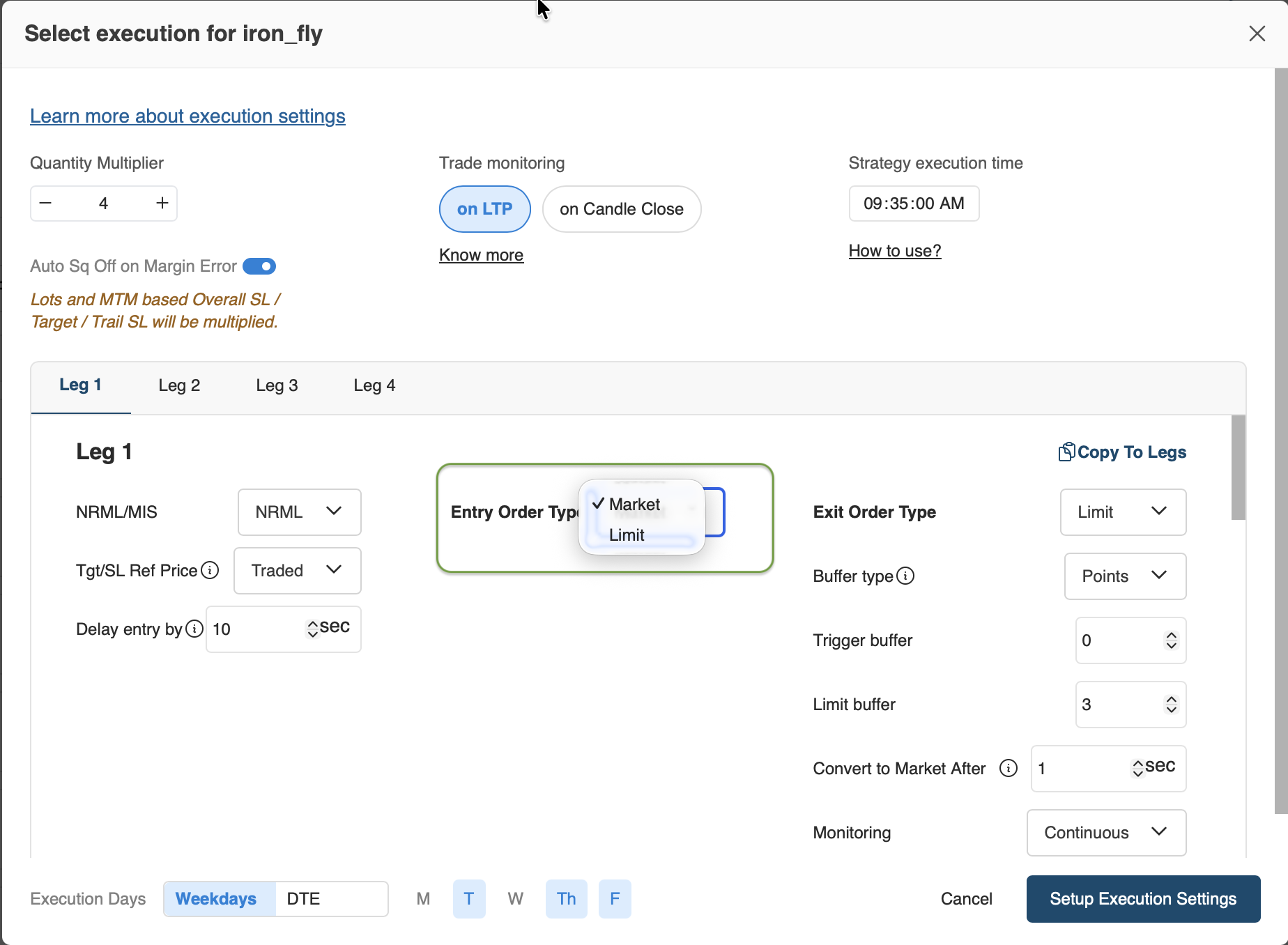 This feature on AlgoTest allows you to execute your entry orders via Market or Limit Order.