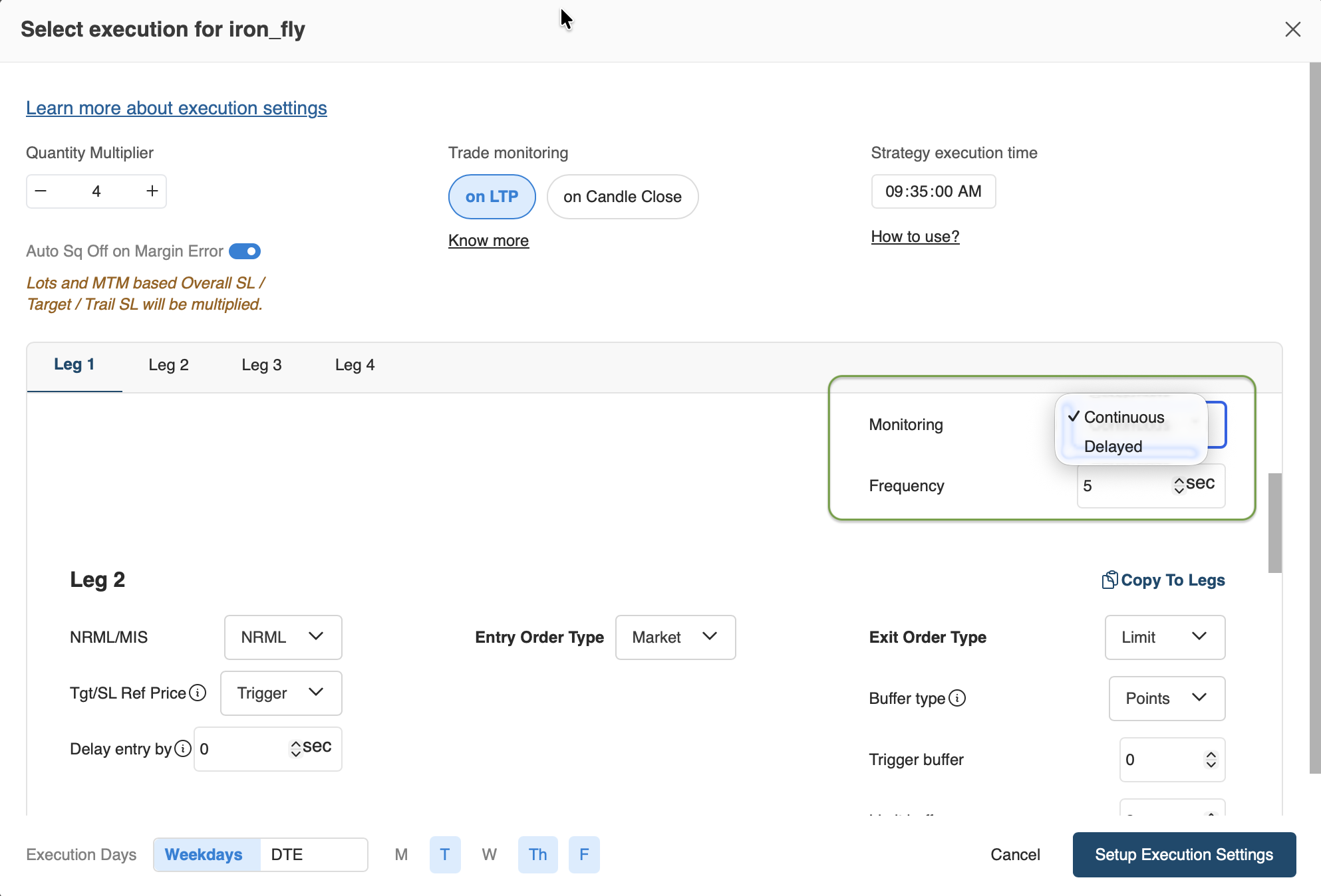 This feature enables you to monitor your trailing stop-loss on continuous or delayed frequency. This applies only to trailing stop-loss.