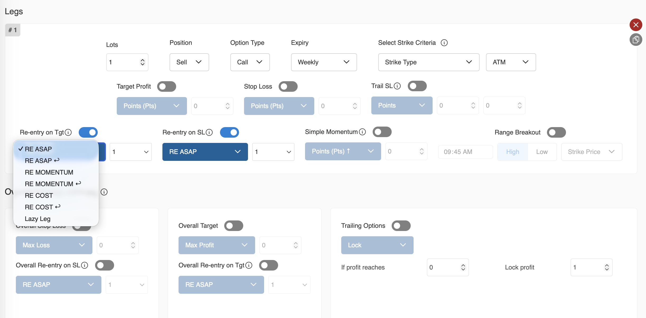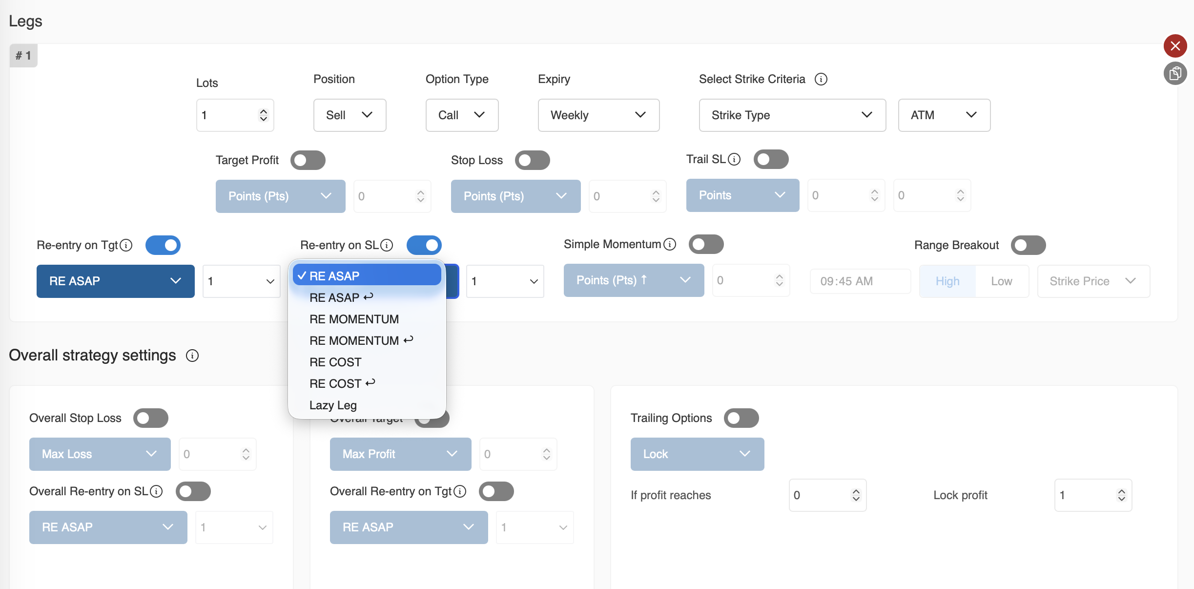 It will determine the strike based on your Strike selection criteria and take the new trade.| Say the SL/Tgt for a leg is hit at 10:02:25.