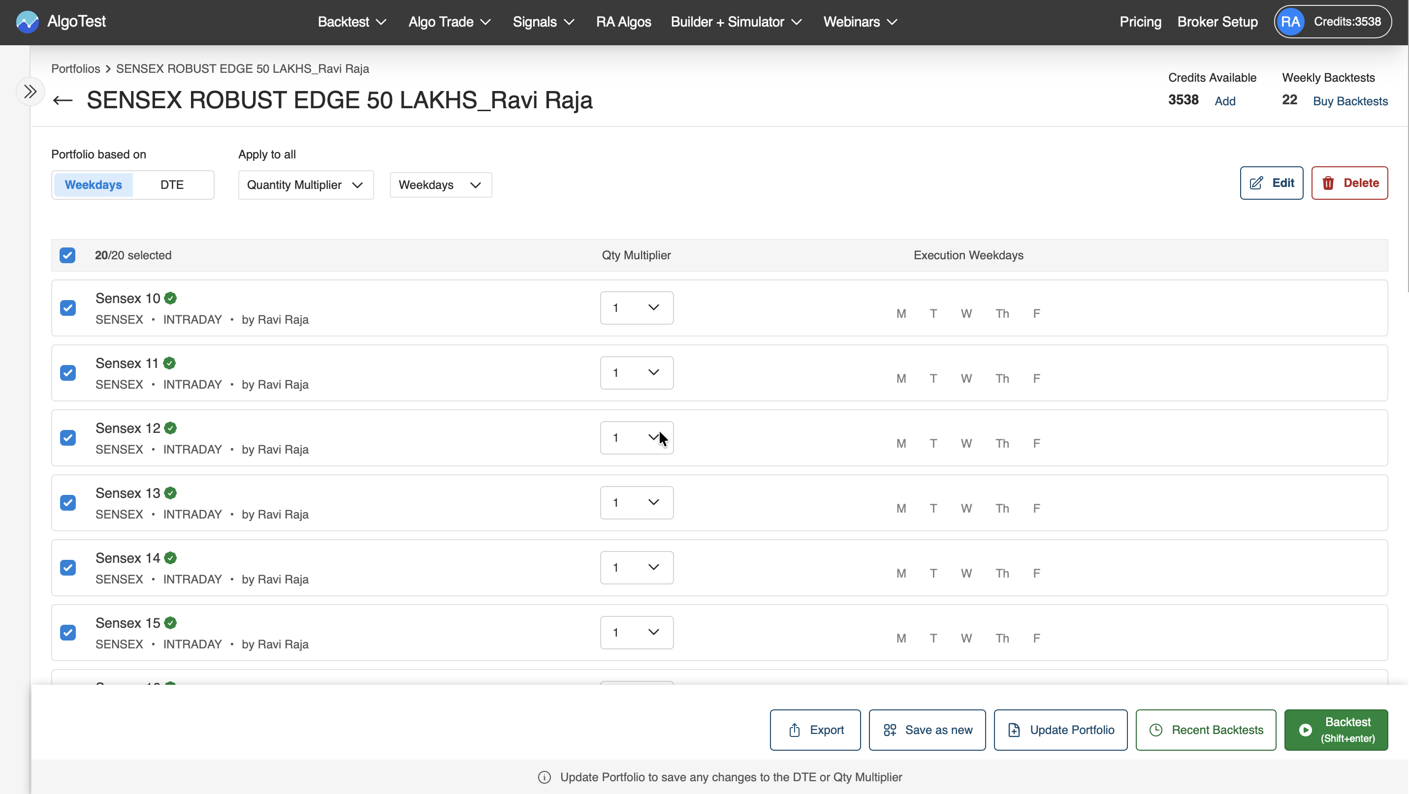 - First, you should backtest a portfolio. To do this, go to the portfolio section and click on the "Run Portfolio" button, as shown in the image below.