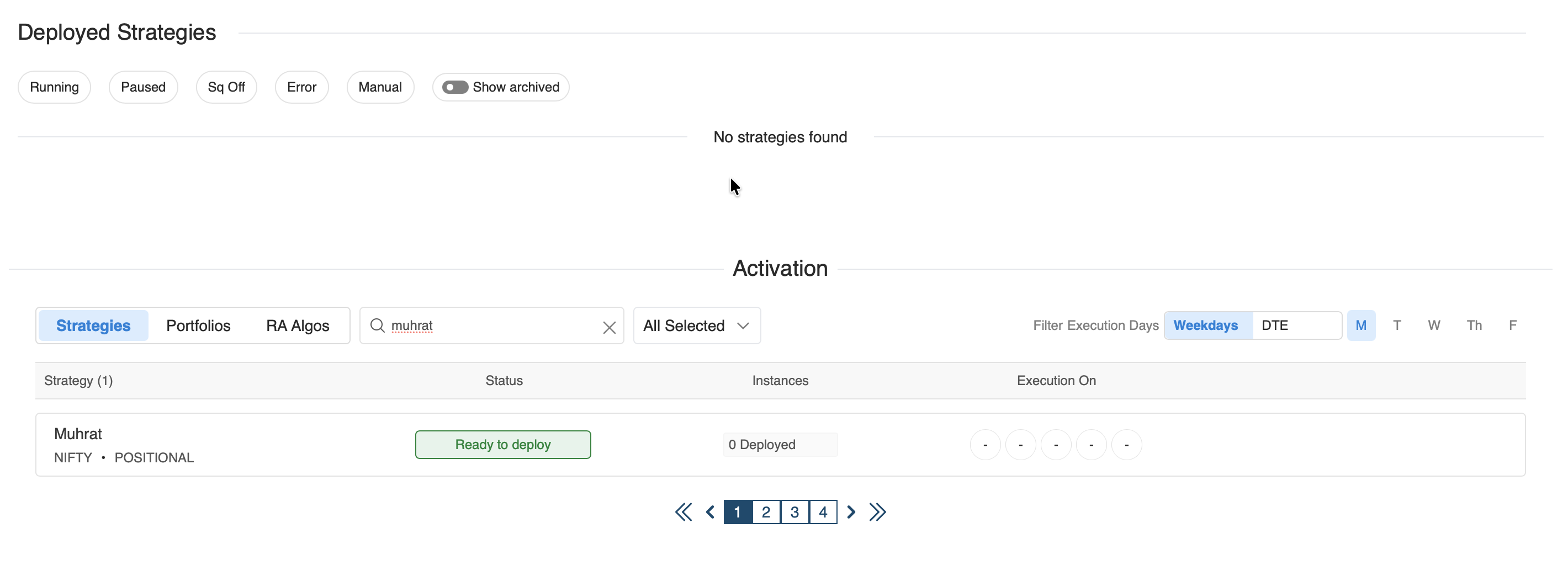 - Algo Trade > Strategies > Search "Muhrat" (or the name of the strategy you created)