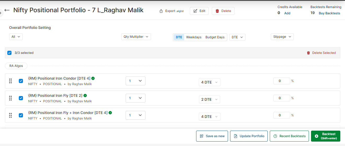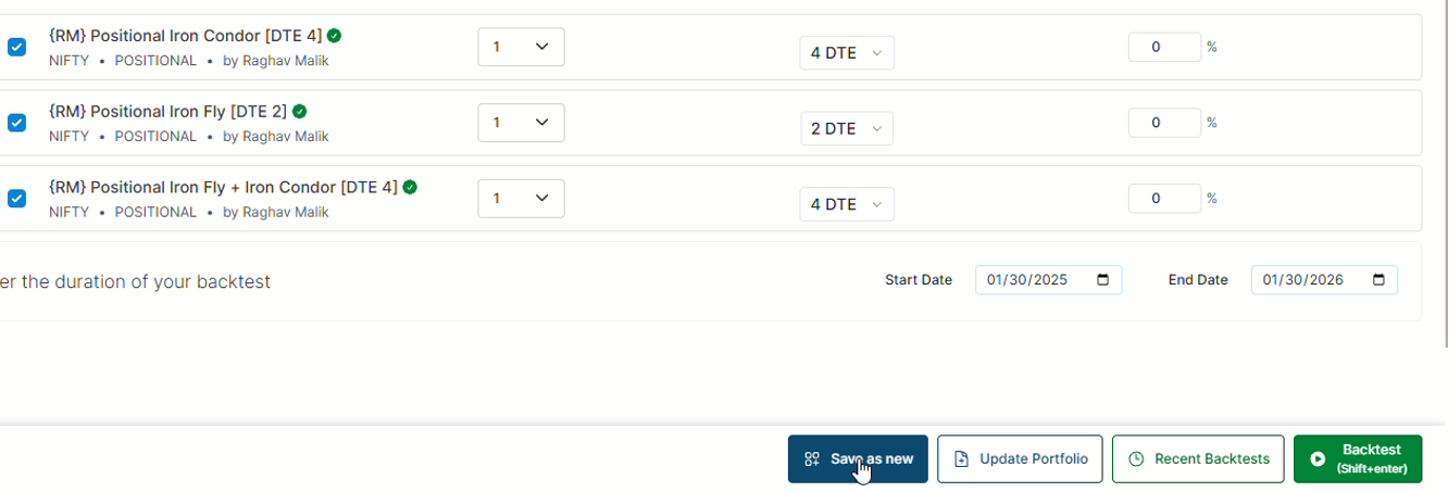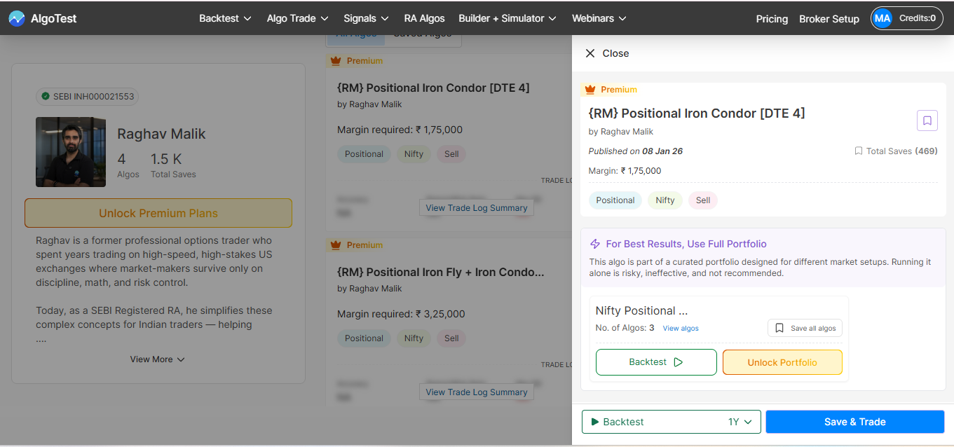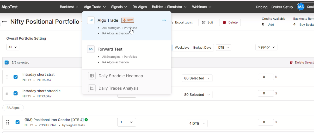 Let’s see how we can backtest the “Positional Iron Condor [DTE 4]" algo.