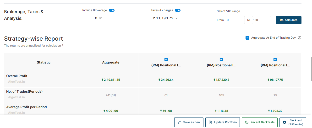 Analyze backtested results by including brokerage, slippages, Taxes and charges.
