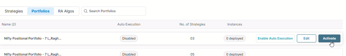 You can go to portfolios and activate your strategy.