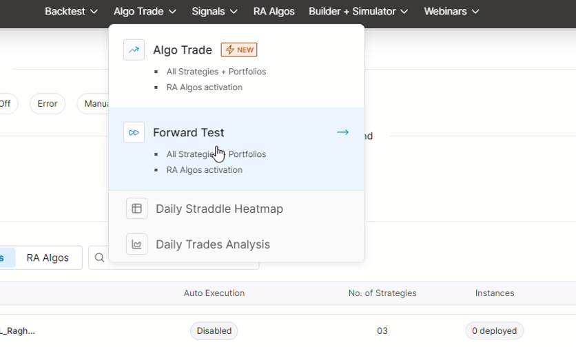 Once you log in to your AlgoTest account, you’ll see the dashboard. Click on the RA Algos to start the activation process.