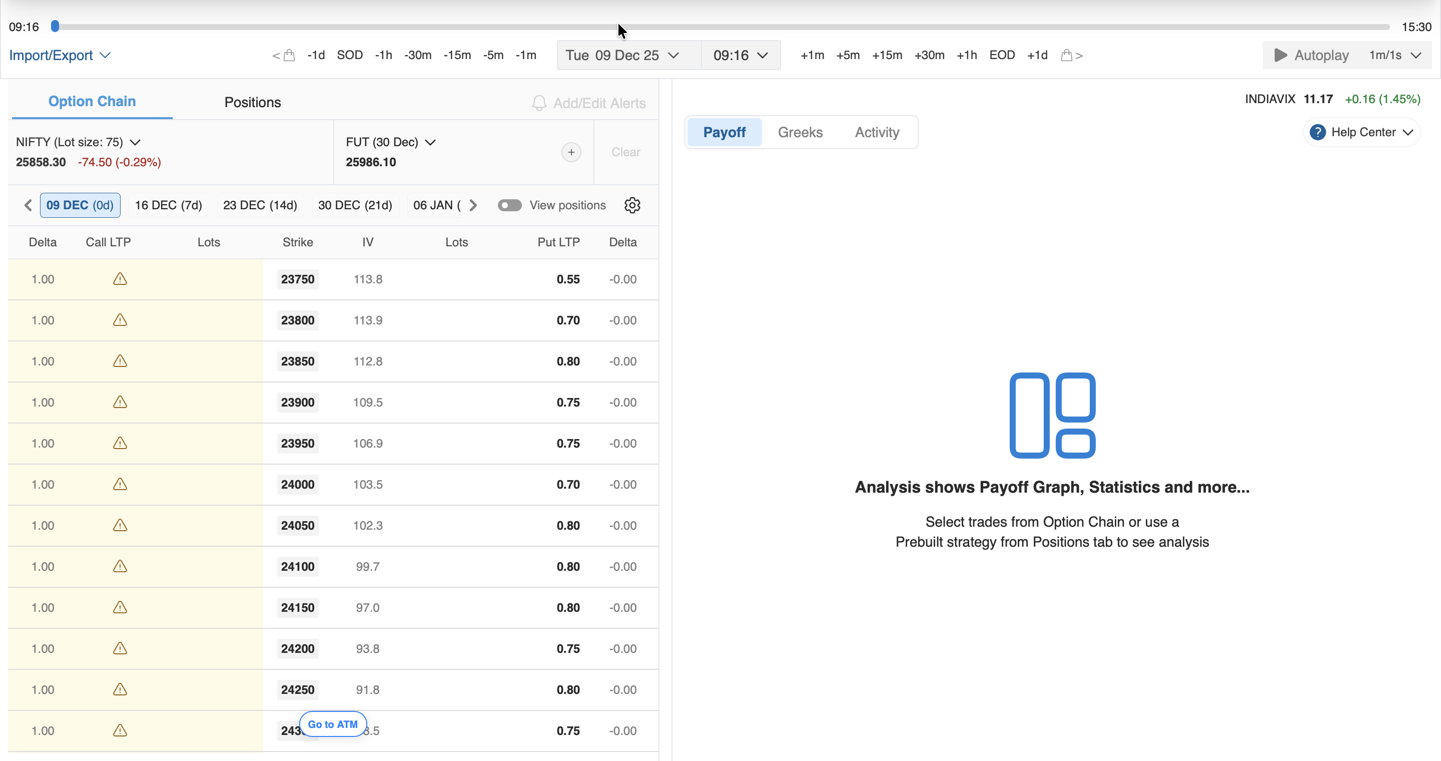 You can now view the option chain for the selected stock option. Additionally, you can choose between the current or upcoming expiry dates from the expiry date bar, as shown in the highlighted section below.
