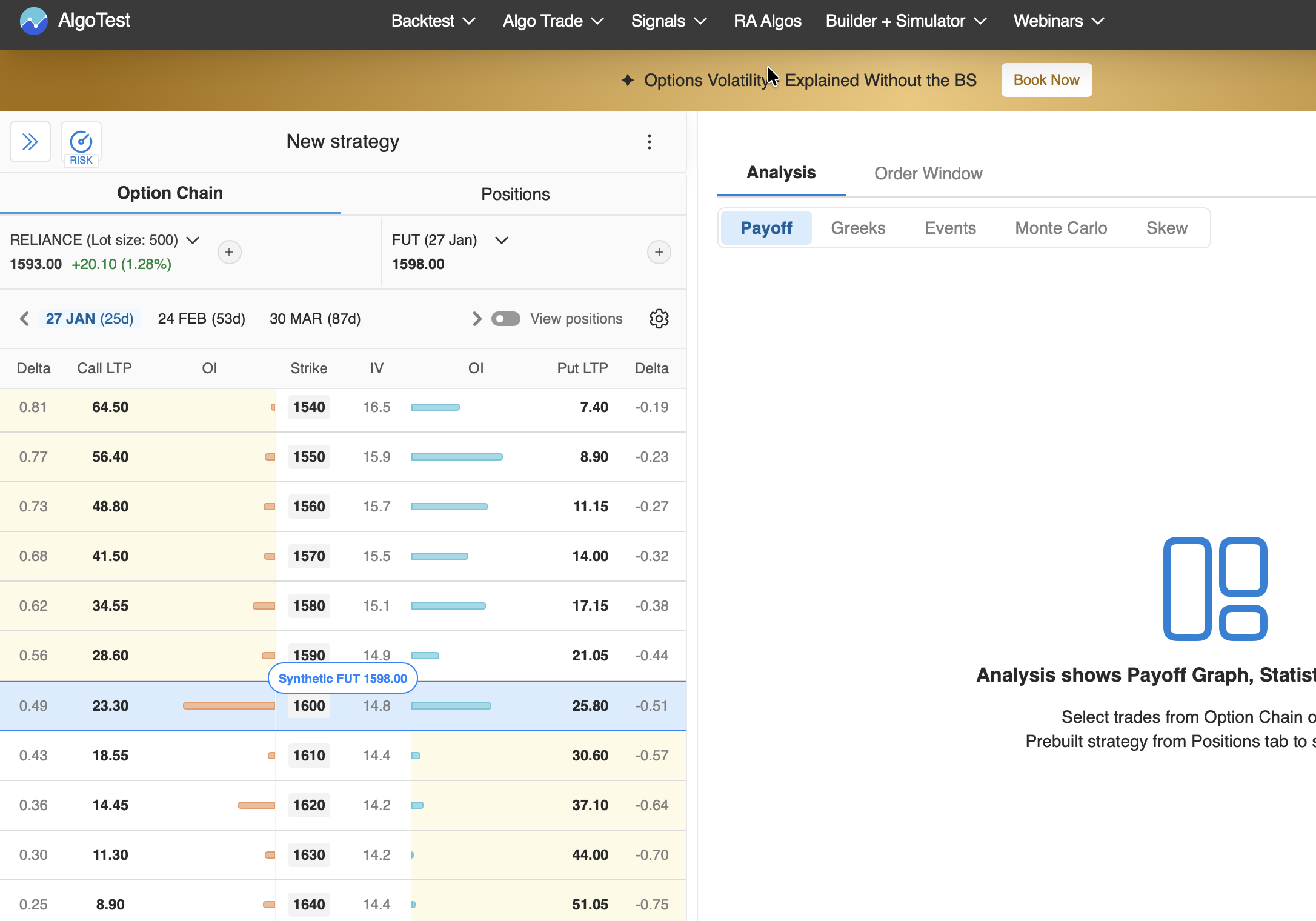 Starting with Reliance stock options, you can now access a robust platform for building and optimising your trading strategies.